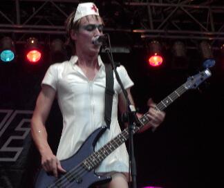 Chris Chameleon, dresses like a nurse with spiked heels and visible white