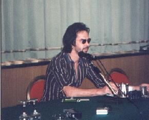 After the press conference, while the other journalists get busy asking questions to Tarantino impersonators The Tarantinos, who try to lamely scare them with their toy guns (dear, oh dear), I finally get the chance to ask Khan and Kid Congo Powers a couple of questions in their dressing room. Unfortunately Julee is not staying with us, but she's back to their hotel to have a rest. Anyway, we can all the same have a nice chat and go back to talk about Khan's multifarious music projects. In his life, Khan has also been H.E.A.D., Cube 40, Global Electronic Network, Khan & Walker, El Turco Loco, Super-8, PSI-Project, Black Sabbath Riot, Mass-Turbator, Radiowaves and 4E. "They were all really really important music project for me," Khan states, "they were important because they got me started with dance music like Bizz OD, Gizz TV, Fast DJ all these were like 12" projects, they were dance projects and that's where I learnt using my drum machines and my instruments, actually I also wanted to split into more different music. As a band, as a project, as a producer you can just make all kind of different music under one name. So Khan is the project that uses all the influences from all my other projects and they were all very important. 4E was very very important, it was being more musical instead of having a dance floor effect. It meant introducing more instruments and different beats, it wasn't like a floor to floor thing. All the projects were actually very