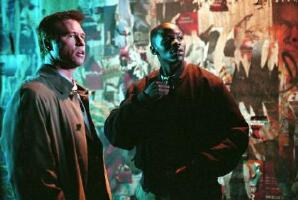 The genre at play here might not be the one you're expecting. While on the surface the film looks to be a political thriller - its central conceit is that a lone-guman-type special agent must help find out who kidnapped the President's daughter - in actuality it owes much to the hard-boiled detective fiction of writers like Dashiell Hammett and, even more so, Raymond Chandler. The film's lead character, Scott (Val Kilmer), is very much in the vein of Chandler; he's introduced as a tough-as-nails man-for-hire who knows everything and will stop at nothing to make sure the job is done right. Underneath his cold exterior, however, we know lurks both a soft heart and an all-too-human fallibility that he's uncomfortable with. The story also unfolds in typically hard-boiled fashion, with Scott finding himself navigating through a maze of secrets and set-ups. The film's basic world is one where people in power will do anything to stay in power, no matter what they have to do to keep with. The film is populated with weighty actors playing the parts of government officials playing various roles in the system of power - whether it involves keeping the fact of the kidnapping of "the girl" away from the media or tailing someone who may know too much, they'll do what they need to do with cold swiftness.