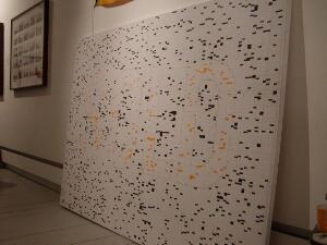 "In 1981, and this is the other part of the story, I was involved in music and went down to London every two weeks. I sometimes wondered around and I had the habit of drawing shapes and of following them. One day I got to this L- shaped lane where there was an art gallery. I got in and there was a thing on the wall that captured my imagination and had a strong impact on me because it wasn't urban, it was a piece of art done outdoor and it was a piece by Richard Long. In the late '80s, early '90s I got success and with success I got a lot of money. I had never been particularly interested in things one can do with cash after paying the rent, paying for groceries, going on holiday with kids and that kind of stuff. I had never tried to grow up a healthy coke habit or such things that you do with money that comes from that sort of success. Come 1995, I wanted to buy myself a present, I wanted a reward and I decided to get myself a Richard Long, all mine, my own Richard Long! I went back to the gallery that represented Long and asked about any work by Richard Long connected with Scotland to have a connection between the work of art and the place where I came from. They hadn't any, but told me they had some stuff Long did about Iceland and asked me if I would care to see it. They had Long's text work and his photograph work all done on this walk he had done from the top to the bottom of Iceland. He had followed the same route me and my sister had attempted to do and he had achieved this in 1994. He had got to this place portrayed in a piece called "A Smell of Sulphur in the Wind" which I recognised: it was the exact place where my sister and me gave up. So I thought that piece was the one for me. At this point I didn't know how much these things cost, I had no idea, I had never been in the business of buying art before, I was in a situation in which I could have afforded to spend £1000 or £5000 on such stuff. I asked how much the thing cost and the gallery guy told me $20,000. The first thing I thought was 'I'm in London why the price is in dollars?' and I asked this to the guy who explained me the prices of the international art market were in American, German or Japanese currencies, this happened before the Euro of course. The guy worked out that the price in pounds was £13,000 or could have been £14,000, I can't remember exactly. Anyway, I wrote a check to the guy and he didn't even ask for my details, he just accepted it. I wasn't dressed much differently from how I'm dressed now," Drummond indicates his paint stained t-shirt and trousers and battered boots, "I was wearing my beaten Barbour and I had cow shit on my boots, so I assume the guy must have taken me from a country gentleman! He accepted the check and wrapped the Richard Long for me and I walked out in the street getting to the tube station with a fucking Richard Long under my arm. I went back home and put the piece on my bedroom wall and there it stayed."