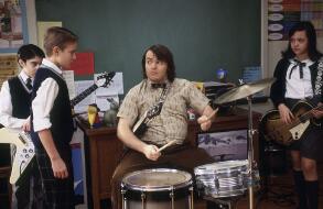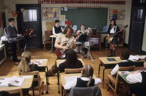 Many of the funniest moments showcase Dewey teaching the kids the basics of rockin'. His shock at their lack of music knowledge ("You've never gotten your Led out?") provides a classic scene. The students watch videos of Plant, Townshend, and Hendrix to develop all the right moves. Instructing the stiff guitar player on the moves, he tells the boy to "raise that goblet of rock!" The kids without musical talent are chosen for security, roadies, and groupies, completing the essence of any good rock tour.