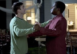 Guess what movie’s not as dumb as its trailer? If you’ve seen the trailer for the new Bernie Mac/Ashton Kutcher vehicle Guess Who, or if you’ve ever seen a romantic comedy about two mismatched lovers, you know how the movie will end. Ebony and ivory indeed will live in perfect harmony, fueled by manic go-kart races and awkward jokes about color. On paper, the movie is an update of the award-winning 1967 relic, Guess Who’s Coming to Dinner, with Mac and Kutcher reversing the race of the Spencer Tracy and Sidney Poitier roles for modern-day relevance or some kind of statement about contemporary race relations or something else highly marketable. On screen, the movie is something else: the latest Hollywood product in a profitable run of mixed-race buddy pairings, from the Taciturn Asian (Jackie Chan) and Motor-Mouthed Black Man (Chris Tucker) pictures, to the Taciturn Asian and Laid-Back Stoner Dude (Owen Wilson) flicks, to the ongoing Ben Stiller and Anonymous Gentile series. Although Kutcher’s white Simon character is engaged to the beautiful black daughter, Theresa (Zoe Saldana, previously seen in the Britney Spears vehicle Crossroads), of Mac’s Percy Jones, the movie’s focal relationship is really that of Simon and Percy; they are the buddies, the mismatched lover characters, straining to overcome not just race but embarrassing first impressions and a healthy distrust of each other’s motivations while winning each other’s affections. Through a series of implausible events that only happen in movies (indoor tackle football, Simon and Percy sharing a bed, people north of the Mason-Dixon line liking NASCAR), both characters come to accept each other as future in-laws, complete with a musical ensemble piece at the end. Much of the comedy comes from where it’s expected: Mac’s bulging eyeballs versus Kutcher’s aw-shucks, broad-shouldered goofiness. (If not exactly charismatic, Kutcher is usually at least likable.) Saldana, too, proves adept at holding attention, and not just because of her flawless skin. Her glowing smile and easy rapport with Kutcher help light up the screen. Even though the lovers come from different backgrounds (in a further race reversal, Simon’s dad is the deadbeat who left his mother, while Percy is a doting, successful father with a lasting marriage and a suburban manse), the sweetly giggling actors make it clear their characters should be together, even when they’re fighting. To them, race doesn’t matter, and the obvious point of the movie (and the secondary reason for its being made) is that it shouldn’t matter to the audience, either. So let’s erase the color line by laughing at it; let’s share an uncomfortable hilarity; let’s lessen or reclaim the sting of racial jokes by telling them and getting them over with (which Simon does, at the dinner table, in one of Guess Who’s funniest but most painful scenes). The movie’s underlying liberal feel-good-ism doesn’t negate its desire (and our collective need) to explore the topic of race, an issue that still proves divisive and continues to suffer from a lack of honest discourse in this country. The fact that Guess Who isn’t already viewed as an anachronism like its original, from almost 40 years ago, is no laughing matter. True, the MTV-watching kids who leave the theater won’t be inspired to actually do anything about race relations, but at least they’ll have something to think about in the minutes before they forget this movie. And yes, Guess Who is an imperfect, admittedly facile, comedy, but this makes it no less amusing, and no less worthy of its inevitable sequel, than Meet Ben Stiller’s Girlfriend’s Differently Cultured Parents. * E-mail the author at mattwebber@gmail.com with questions, comments, or suggestions. Visit www.matthewwebber.net for more writings or information. |
