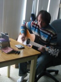 "you don't have to prove anything to me It's a straight-up acoustic recording that I made as soon as I was done composing the song. I considered doing a more orchestrated version, but as I already have a number of more fleshed-out songs on the album I think I'm gonna let this one go on as-is, just to keep it real for the hardcore acoustic lo-fi rockers. As you create more music, do you find yourself getting more or less interested in seeking out and listening to new music made by other people...and why do you think that is? I definitely find myself on a bit of a delay in terms of new music - just because I can't really afford to buy as much new music as I used to and I don't download stuff because I don't have an internet connection at home (and I'm not a borrow and burner, either). The last two new records I got were given to me - I got James Kochalka Superstar's new album from my friend Jason and I got an album from my friend Justin Vancour in the mail yesterday. I do think that sometimes I am just in my own little world of songs. I'm probably my own biggest fan - I tend to go back through the albums I've recorded because songs are for me kind of what photos are for folks who take lots of pictures - I have associations with the day I wrote it, the experience of recording it, and even come to find new ways to interpret the words depending on whatever mood or situation or point of view I'm taking on any given day. It's how I keep track of things in my life and the world. My roommate Jason has an awesome record collection, so I pull out random things all the time - generally older stuff - Mancini or the Misfits or weird percussion or surf records - I do a bit of close listening to pick apart arrangements and to learn ways of putting songs and instruments together that may be different from what I already know how to do.
