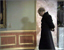 "Imagine you are walking along surrounded by all these ancient people who step out of their portraits. You take a lady by the arm, or test your fencing skills against one of the knights from the Knights' Hall," a man says during Elfi Mikesch's film Mon Paradis (The Winter Palace), a documentary about the Hermitage museum and the people who work there which is included on the DVD for Alexander Sokurov's film Russian Ark. The man is describing the appeal of walking through the museum, interacting with art and history. That interaction is at the center of Russian Ark; the film is essentially a portrait of the Hermitage museum as a living, breathing place.